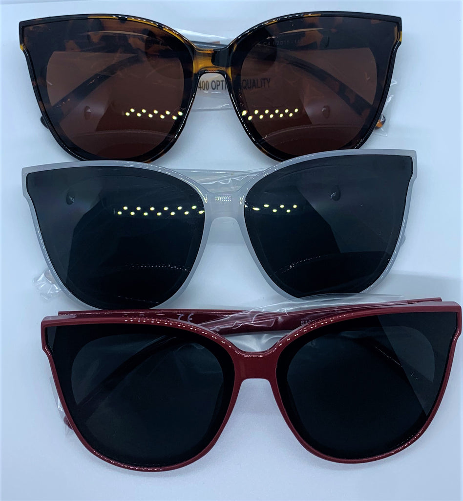 Big shades with a slight cat eye shape at the end. The borders come in 3 different colors to suit your mood.